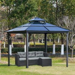 New π₯° Outsunny 9.8-ft x 9.8-ft Charcoal Grey Gazebo with Double Roof/Curtains π