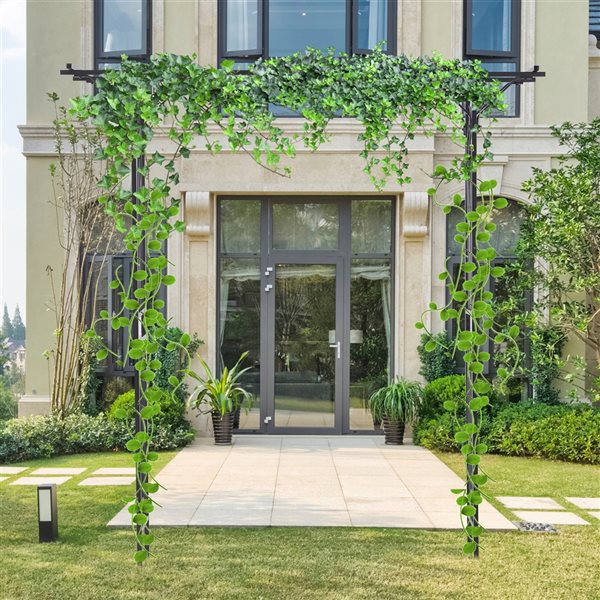 Bring charm to your garden and create a beautiful entry with this elegant and delicate arbour from Outsunny. Horizontal bars provide structural support and serve as an ideal place to hang lightweight potted plants.