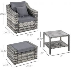 - This patio set includes 2 armchairs, 2 footstools and 1 matching coffee table