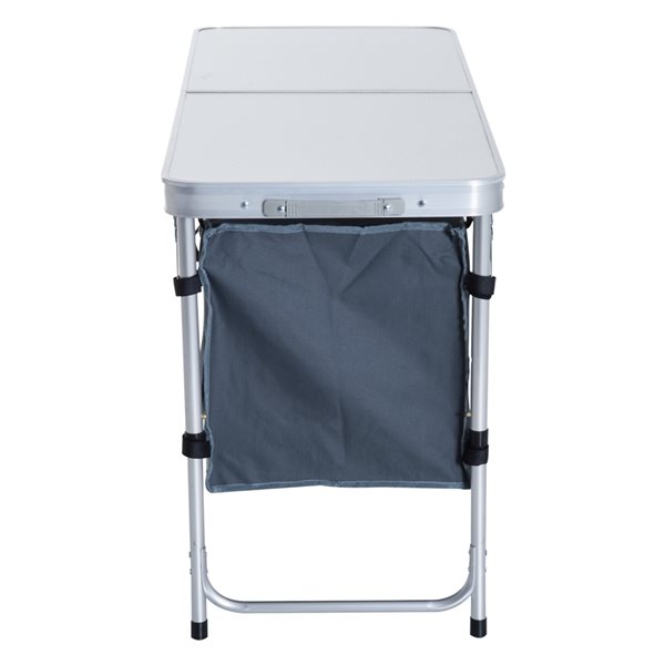 - Oxford compartments attached underneath the table provide ample storage rooms for food and essentials