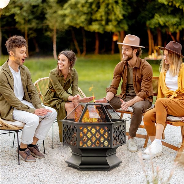 Creating a leisure time with your family in your yard with the fire pit from Outsunny! Stylish and practical, this fire pit is a must have as a reliable way to enjoy a real outdoor wood burning fire.