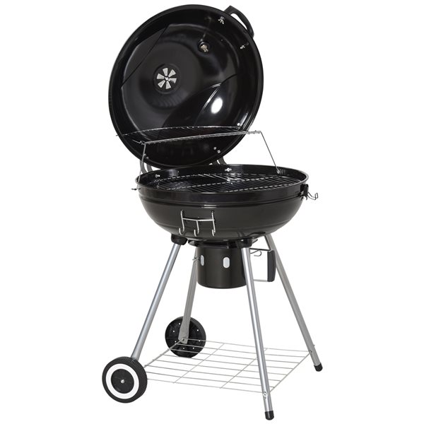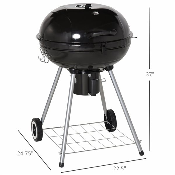 This Outsunny charcoal grill is a perfect solution for outdoor picnic use. Treat your friends and families sometimes with yummy barbecue food is a good choice for gathering in good weather. With its convenient size and mobile nature, constructed of high temperature black enamel and high temperature powder, this grill has a generous cooking area for gourmet grilling wherever you go. The one touch cleaning system provides a hassle-free cleanup of charcoal ash and debris by swiping it into the rust-resistant ash catcher. A great and versatile gadget for any of your outdoor activities. Assembly is required.