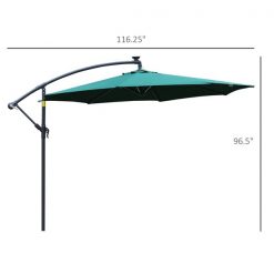 - This patio umbrella comes equipped with a solar panel and 8 preinstalled cool white LED strips one of which has a switch that provides stylish energy-efficient lighting