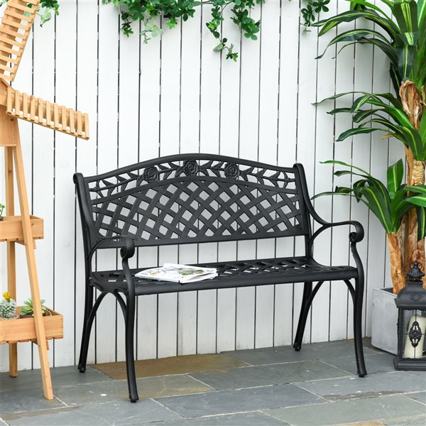 Made with a sturdy metal frame, this bench is sturdy yet comfortable. The back design gives the bench an elegant look that will fit perfectly with any outdoor decor and allow it to maintain its stylish look.