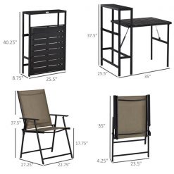 - Includes 1 foldable table and 2 matching armchairs