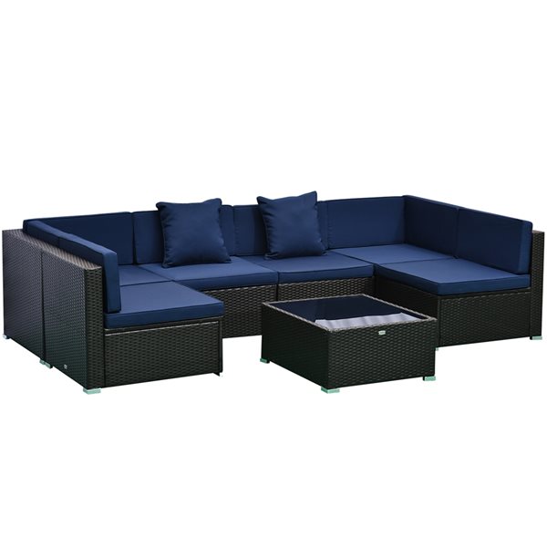 Brighten your backyard with the Outsunny 7-piece outdoor furniture set and make the outside of your home just as inviting as the inside. This set is modern, trendy and provides the user versatility by way of the unique reconfigurable design. Mix and match to create the perfect seating arrangements for your outdoor space. Decorative, functional and durable this set creates an inviting space you and your family can enjoy for years to come.