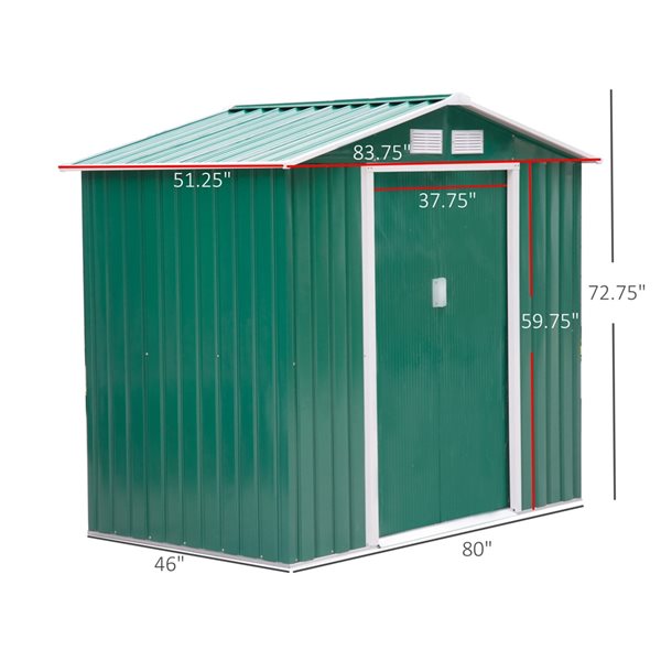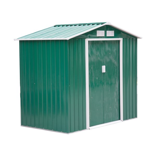 - Heavy-duty galvanized steel construction with reinforced ridged walls, air vents and a sturdy foundation