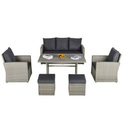 - Includes 2 single sofas, 1 three-seat sofa, 2 footstools and 1 dining table