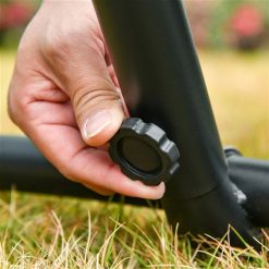 - The stand is made of durable steel with a powder-coated black finish for safe outdoor use
