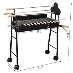 - This 2-in-1 grill has a manual or electric motor that automatically turns