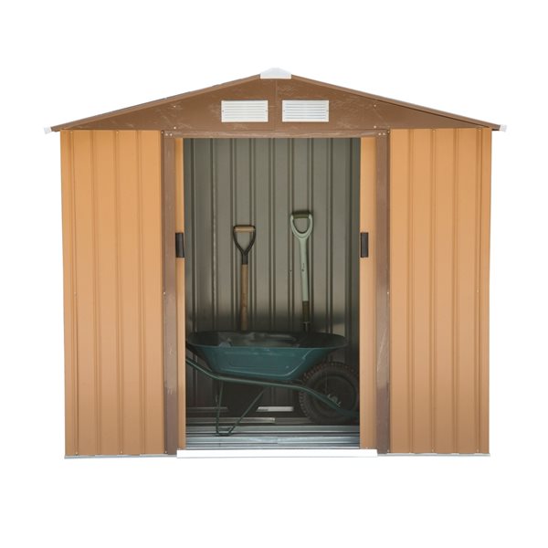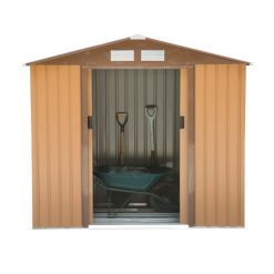 - Shed roof is sloped, adds extra storage and prevents rainwater from gathering and preventing from rust