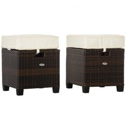 Made of all handwoven PE rattan on a steel frame with powder-coated process, making it sturdy, durable, designed to withstand general wear and tear as well as weather. Features a soft cushion to offer plenty of comfort while still surviving in the weather. Just to put your feet up, this ottoman will be a great addition to your home.