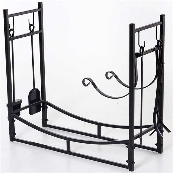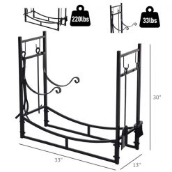 - This large wood rack comes with 2 moveable holders for kindling and includes 4 hooks for tools, offering ample storage space for fireplace accessories