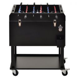 Bring the party with you wherever you go with our portable rolling cooler cart from Outsunny. Made of durable steel with a stylish colored finish, it’s the perfect companion to any outdoor gathering. This 60L cooler will keep beverages and food cold with the added entertainment feature, a built foosball table. This cooler is the perfect combination of form, function and fun! The foosball table is sure to keep your guests entertained for hours. A drainage hole located on the back lets you quickly remove excess water while a convenient bottle opener with cap catcher is attached to the front. Get your summer started right with this versatile rolling cooler from Outsunny and turn your patio from a waste of space to the party place.