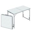 - This outdoor table can be folded up into a square for easy transportation and storage
