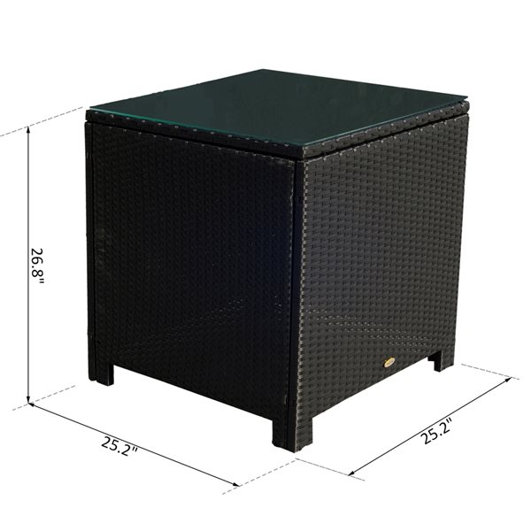 - Overall dimensions: 25.2-in x 25.2-in x 26.8-in