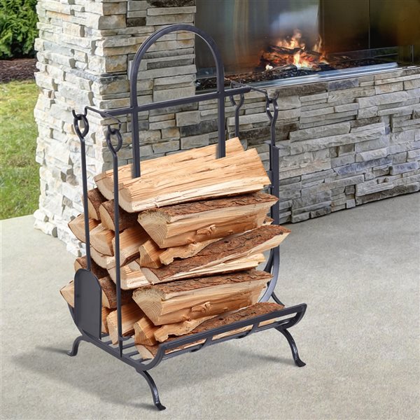 This rack is built to save you during those cold winter days. Made of sturdy iron, it has a firm and durable base that allows it to hold a good amount of wood to keep your fireplace going all day. The small shelf on the bottom works great for kindling while the hooks offer you the perfect space to hang accessories. The quality wood rack is a great piece to store your wood correctly and ensure that you always a source of dry wood available.