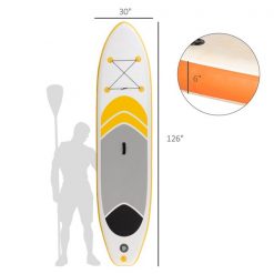 This inflatable surfboard from Outsunny can bring you happy hour on water. It comes with everything you need for a paddle boarding trip. The board is lightweight and foldable design, come with backpack make it simple to transport. The adjustable aluminum paddle allows for a wide range of user heights. Thanks to the D-shape buckle with safety rope, non-slip EVA part, and back fin, you and your staff are safe. A simple and enjoyable way to spend your vacation time on the water.