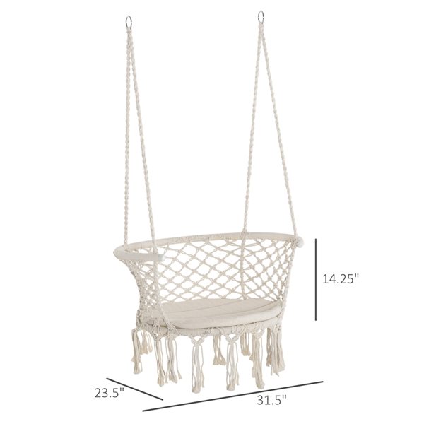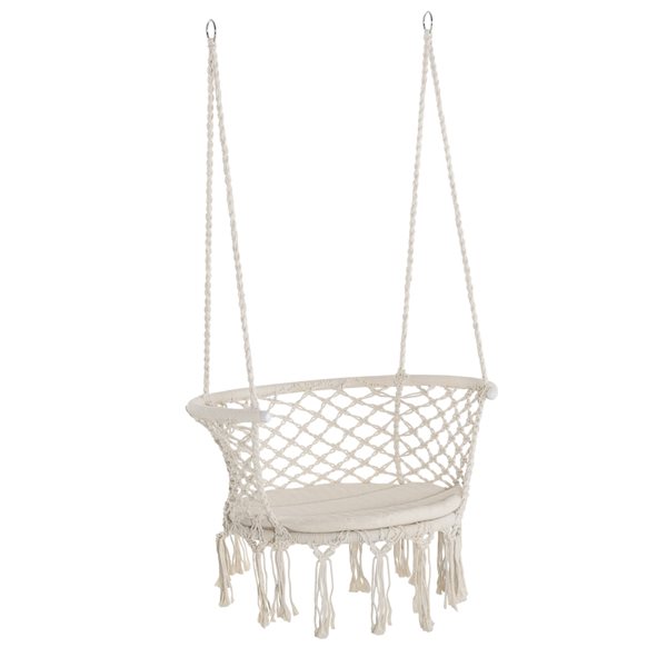- Boho-style hammock chair features macrame net pattern with hanging fringe tassels for an unmatched look of elegance