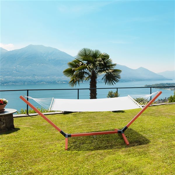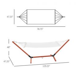 This Outsunny hammock bed with modern shape and pure colour design can be an ideal addition to your patio, yard or garden. No more searching for the perfect tree to hang your hammock, this practical hammock bed supported by a freestanding frame. With this hammock, you can take comfortable naps on your porch, under a tree or by the pool for hours of relaxation.