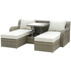 - When you raised the side table, the sofa can be used as a double lounge sofa with footstools