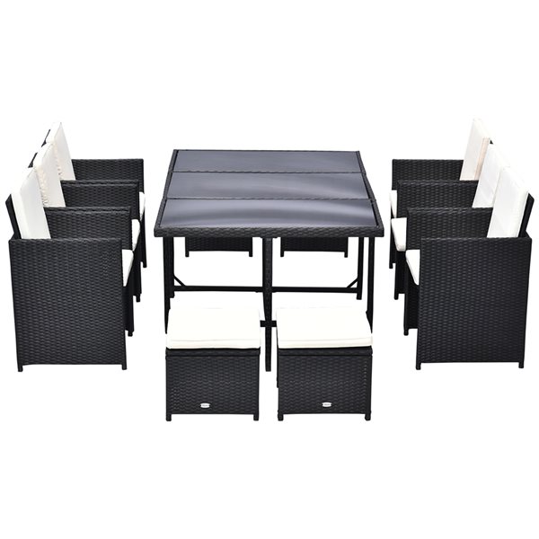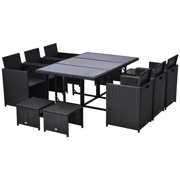- Includes 1 dining table, 6 chairs and 4 footstools ideal for indoor or outdoor use