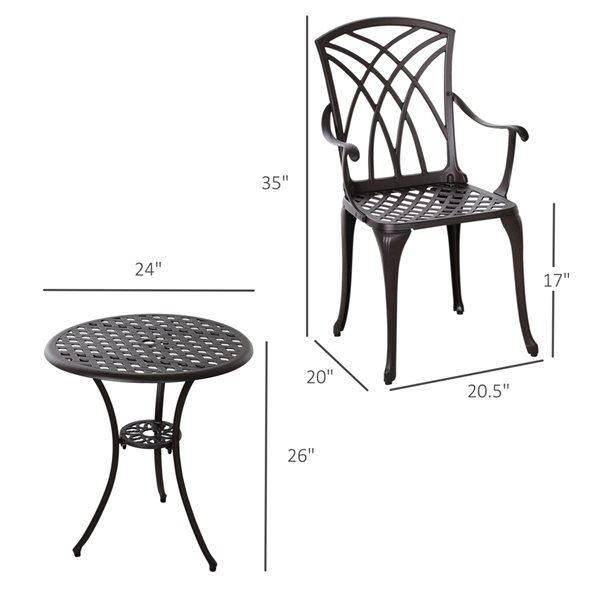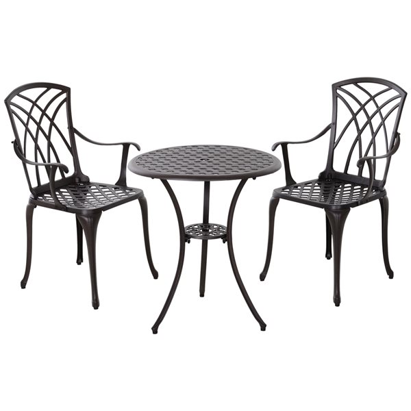 The three-piece Stamford set from Outsunny will be a perfect spot for dining and relaxing. It’s formed of two bistro chairs and a matching table, with cast aluminum forming the frame of all three pieces to ensure they are sturdy and tough, as well as being resistant to rusting and mild everyday wear-and-tear. Round design, the table features a middle hole to keep a sun parasol securely in place. Ideal for flats and apartments with balconies.