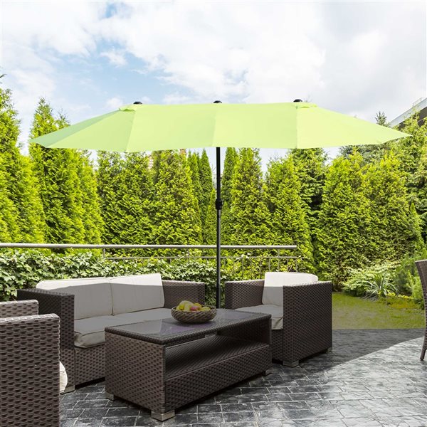 - This 15-ft long patio umbrella provides added protection with its extra-large double-sided design featuring an 8.85-foot diameter