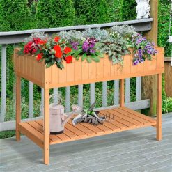 The elevated planting bed brings a rough and natural look to your outdoor decor. It’s ideal for small patios, decks, balconies, condos, apartments and more. This solid fir wood construction makes this item serve you for a long time.