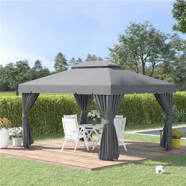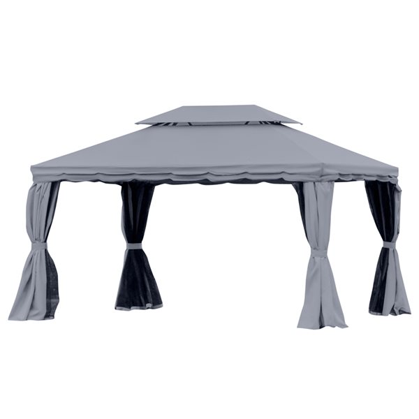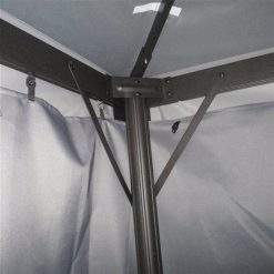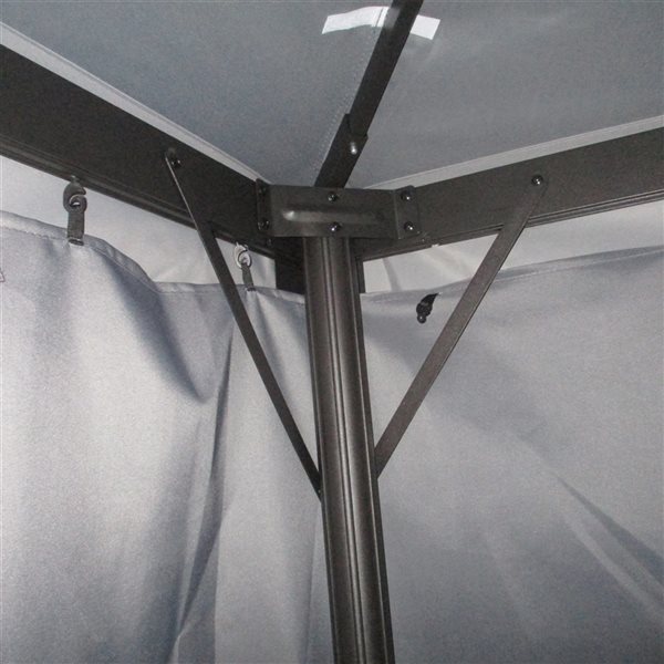 - Sturdy aluminum frame, durable polycarbonate hardtop canopy, sun-blocking curtains and mosquito screen