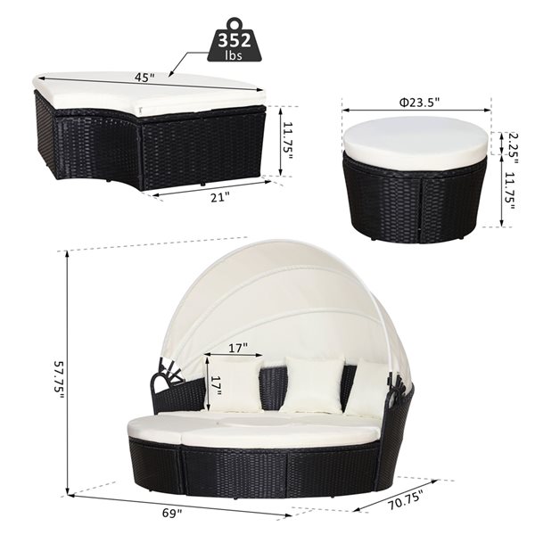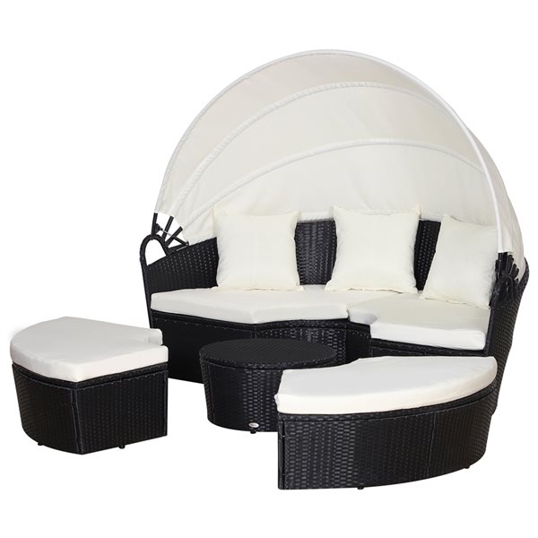 Brighten your backyard with this Outsunny’s set. Simply extend that canopy and relax in comfort. Combine all the pieces together to make one giant daybed, or pull them apart for plenty of seating. Decorative and functional, this furniture set creates an inviting setting you’ll want to use.